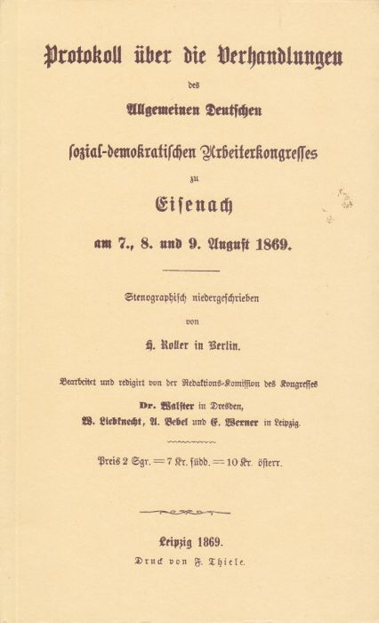 Protokoll über die Verhandlungen des Allgemeinen Deutschen sozial-demokratischen Arbeiterkongresses zu Eisenach 1869 (1989)