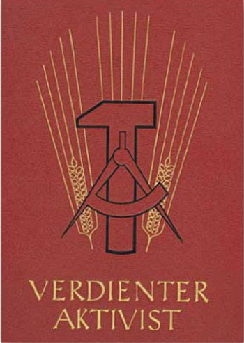 Motiv: Verdienter Aktivist (Urkundenmappe, DDR 1955)