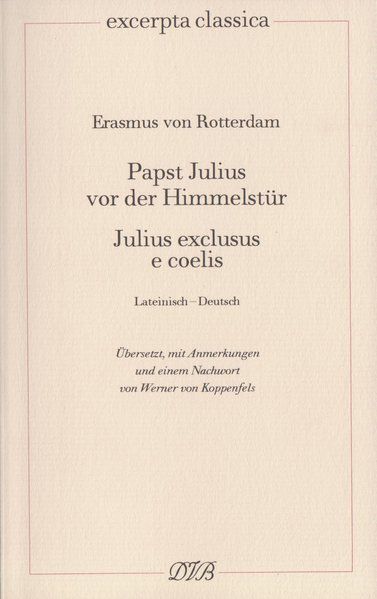 "Der Papst der römischen Kirche ist der Nachfolger des Petrus, dem Christus die Schlüsselgewalt am Tor zum Himmel übertragen hat. Das ist, in einem Satz, die spirituelle Grundlage der Macht des mittelalterlichen Papsttums. (…) An dieses Fundament rührt ein beispiellos kühner Dialog, der seit jeher dem Humanisten Erasmus von Rotterdam zugeschrieben wird. Ein soeben verstorbener Papst, der gewaltsame und weltliche Julius II., den wir vor allem als Auftraggeber Raffaels und Michelangelos im Gedächtnis haben, gelangt an die Himmelspforte und wird von Petrus nicht eingelassen.