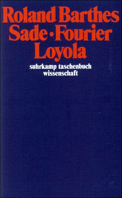 »Nicht aus Lust am Provozieren sind Sade, Fourier und Loyola in ein und demselben Buch zusammengestellt worden, sondern weil alle drei Klassifikatoren, Sprachbegründer waren: der verfemte Schriftsteller begründete eine Sprache des erotischen Vergnügens, der utopische Philosoph eine Sprache des sozialen Glücks und der heilige Jesuit eine Sprache der Anrufung Gottes. Zeichen erfinden und nicht, wie wir es alle tun, nur konsumieren heißt paradoxerweise in den Bereich jenes Nachhinein des Sinns einzutreten, der das signifiant darstellt, kurz, eine Schreibweise praktizieren. Daher beschäftigt sich dieses Buch auch nicht mit dem Inhalt der Schriften dieser drei Autoren (…), sondern es behandelt Sade, Fourier und Loyola als Formulierer, Erfinder von Schreibweisen, Textoperateure.« Roland Barthes
