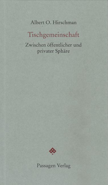 Die gemeinsame Mahlzeit – oder die Tischgemeinschaft – ist einer jener Anlässe, bei denen sich das Private und das Öffentliche vermischen. Hirschman geht den vielfältigen öffentlichen und kollektiven Handlungen nach, die mit dem Vorgang des Essens und Trinkens verknüpft sind.