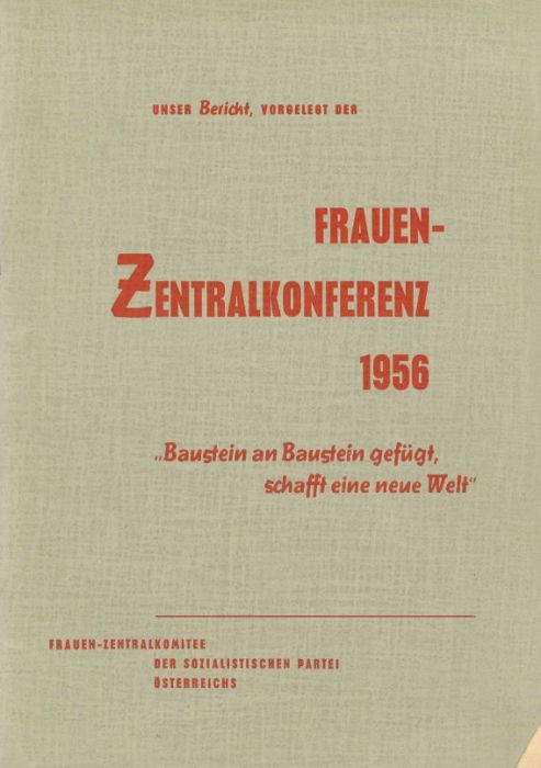 Der Bericht an die Frauen-Zentralkonferenz 1956 erschien im Rahmen des Informationsdienstes des Frauenzentralkomitees der SPÖ Nr. 8-11 August-November 1956.