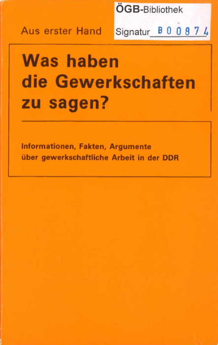 Informationen, Fakten, Argumente über gewerkschaftliche Arbeit in der DDR