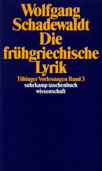 Dieser dritte Band der »Tübinger Vorlesungen« Wolfgang Schadewaldts behandelt nach Philosophie und Geschichtsschreibung die griechische Lyrik, ein weites Gebiet, auf dem Schadewaldt seit seinem frühen Buch Der Aufbau des Pindarischen Epinikion von 1928 immer wieder gearbeitet hat. Die Vielfalt der literarischen Formen entspricht der Verschiedenheit der Lebensformen in dieser Zeit, in der zum ersten Mal auch das Individuelle in den Blick kommt: der lyrische Dichter spricht von sich selbst, und wir kennen seinen Namen.